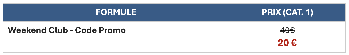 Un code Promo Club à disposition de chaque club (correspondant au code structure du club). Rapprochez-vous de votre club pour exprimer votre intérêt pour cette catégorie de billets.