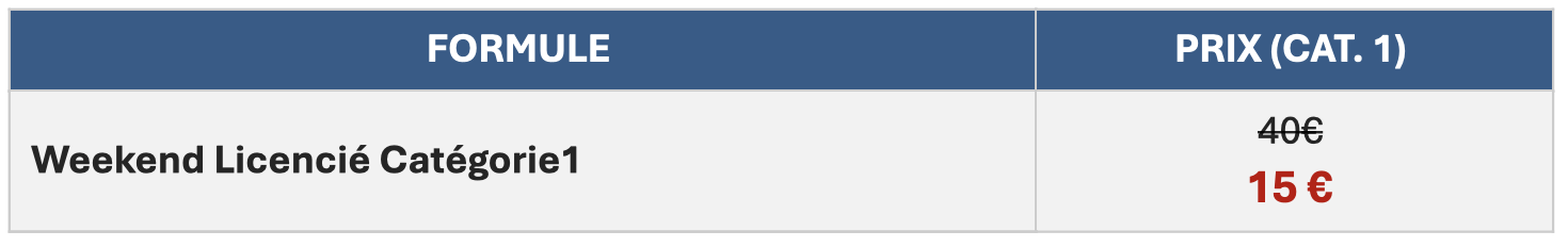 Week-end licencié catégorie 1