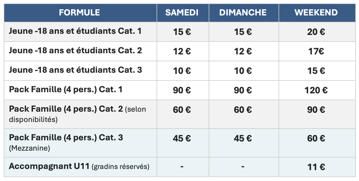 Notre billetterie ouvre d’abord en prévente pour tous les licenciés et clubs, avec des prix exclusifs et accessibles, avant l’ouverture au grand public.