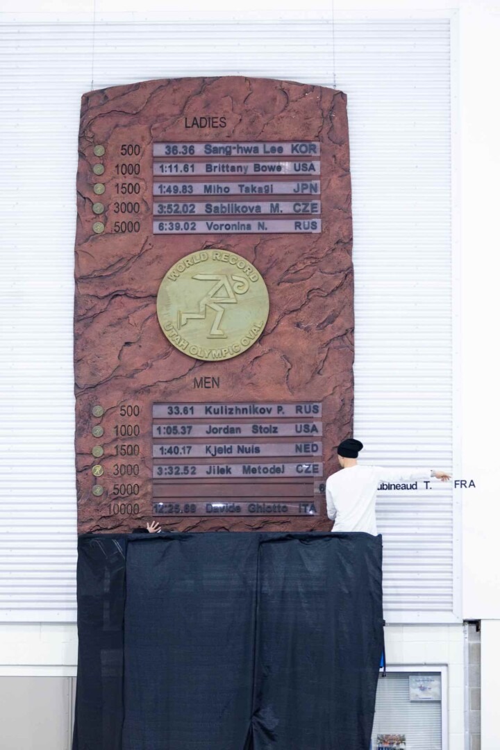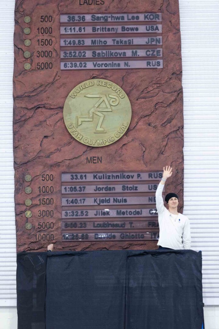 Timothy Loubineaud a également été honoré par l’Utah Olympic Oval lors de la Cérémonie du Mur des Records, où il a apposé sa plaque sur le célèbre « Record Wall ». Une distinction prestigieuse, rare pour un athlète français, qui reconnaît officiellement son record du monde.