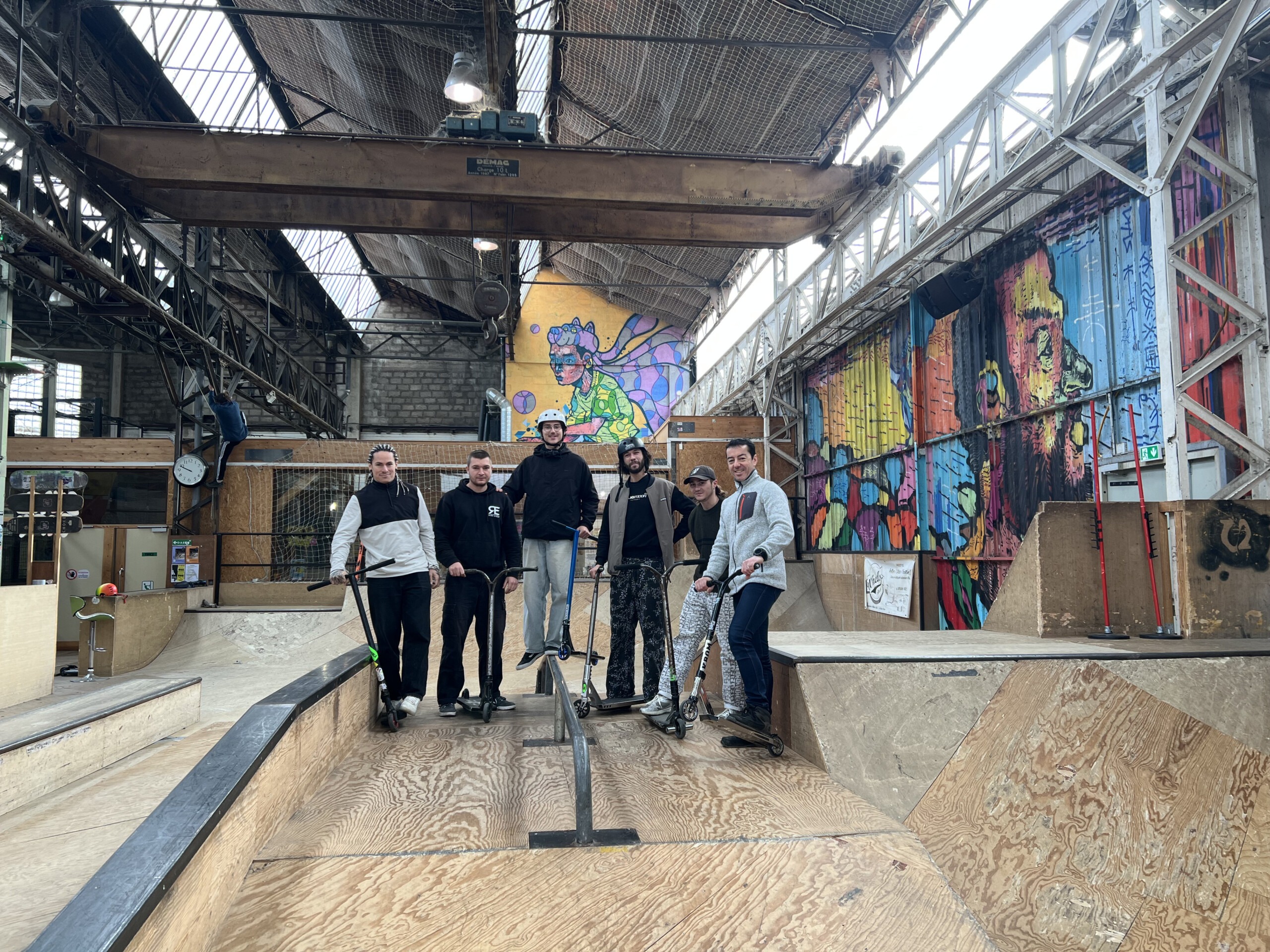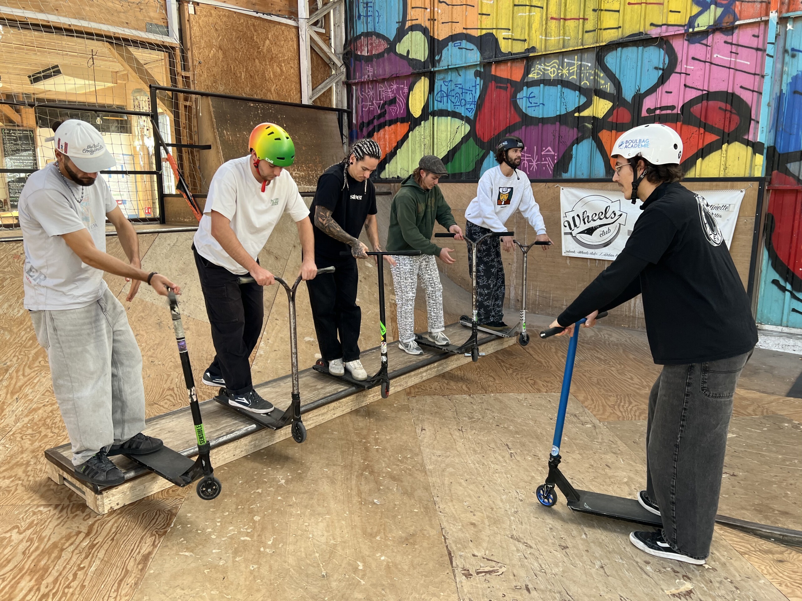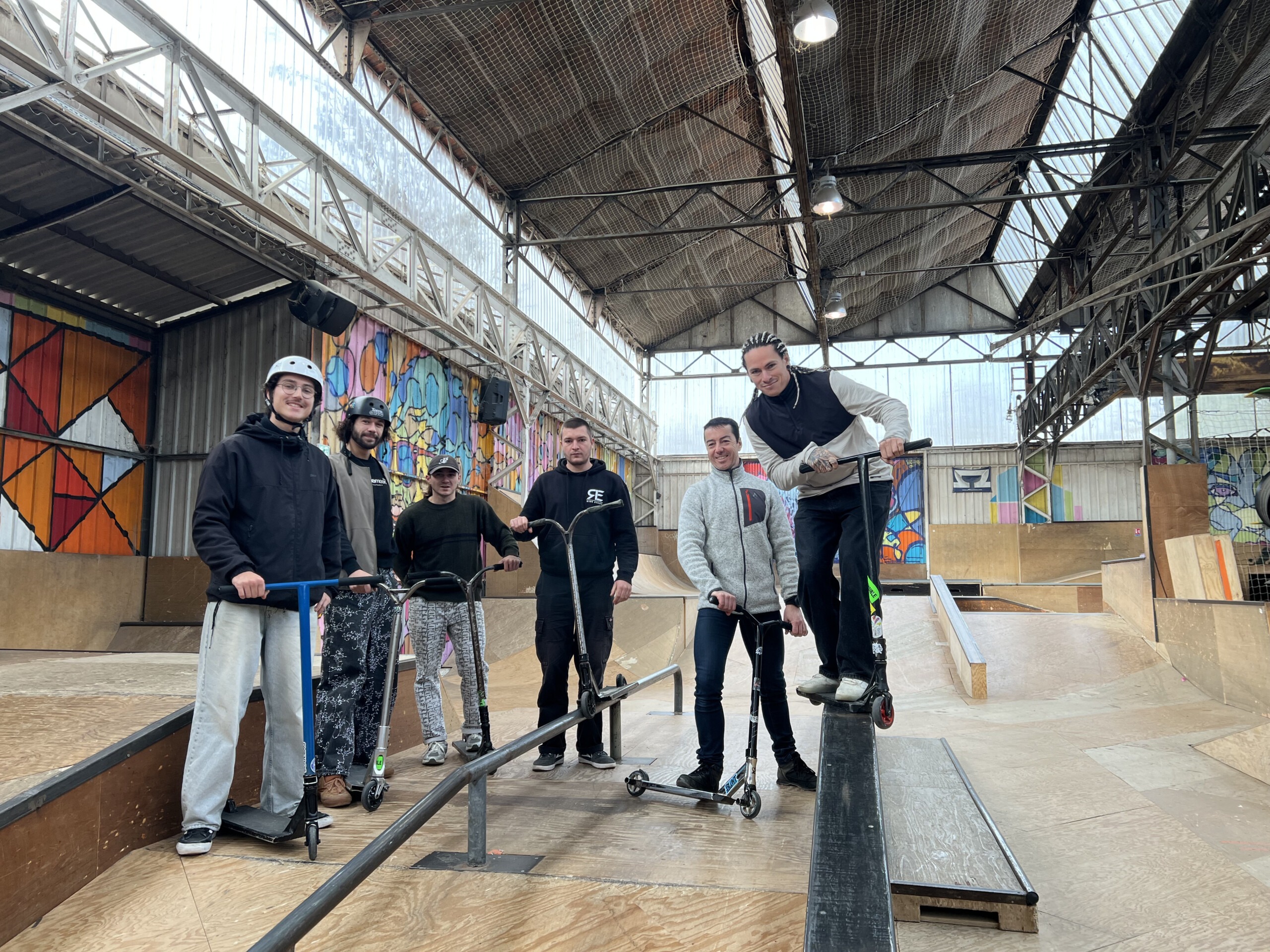 L’URBAN PARC, avec son skatepark couvert de 600 m² et ses espaces dédiés à la théorie, a offert des conditions optimales pour cette semaine de formation. Un lieu pensé pour allier pratique et réflexion, où les cinq stagiaires – Romain HOURDEL, Jérémy DUPIN, François LEMENAGER, Gérald DELVAILLE et Marceau LADHOUE – ont pu explorer les enjeux de l’entraînement sportif en trottinette, dans une logique co-constructive.