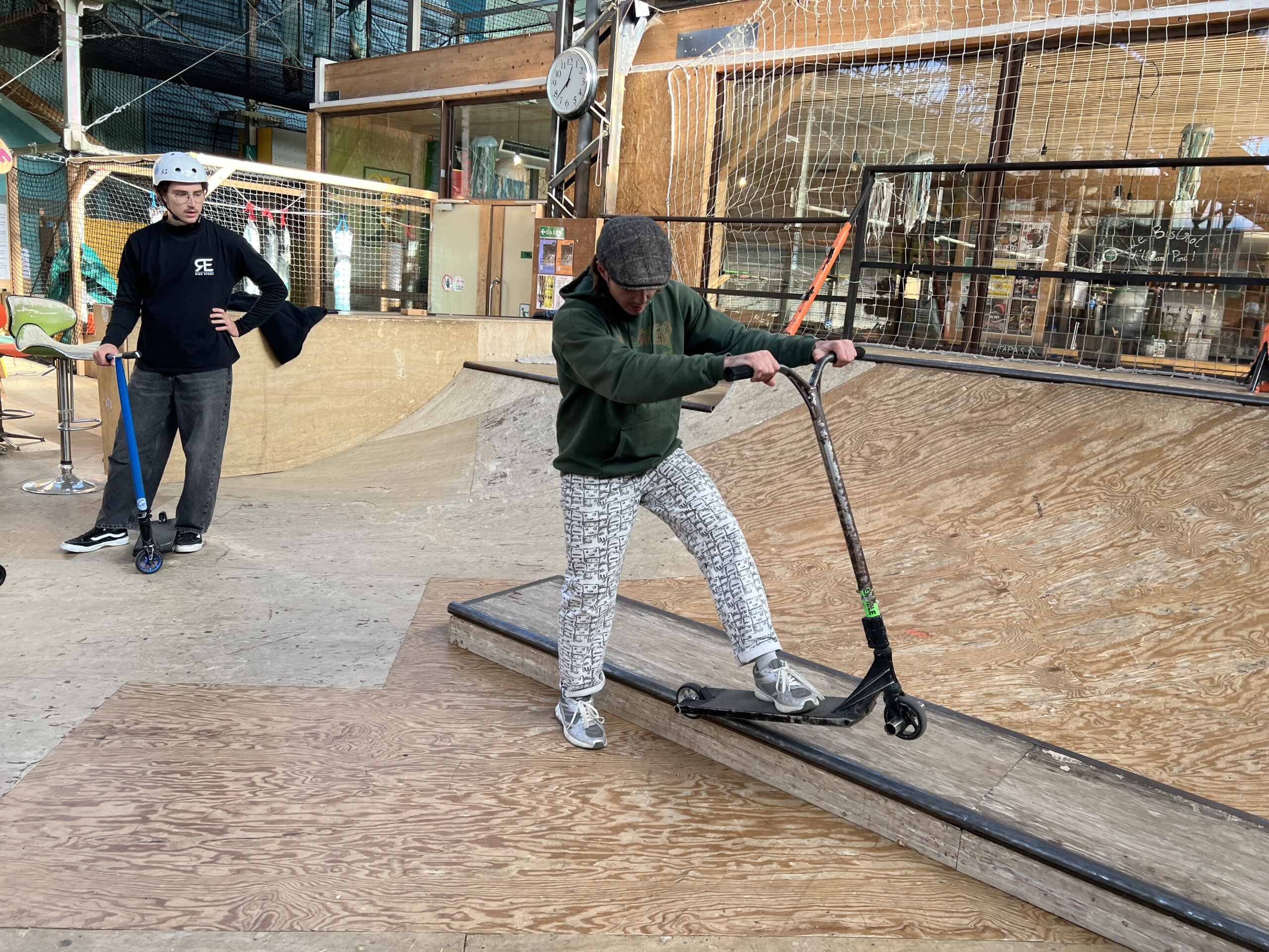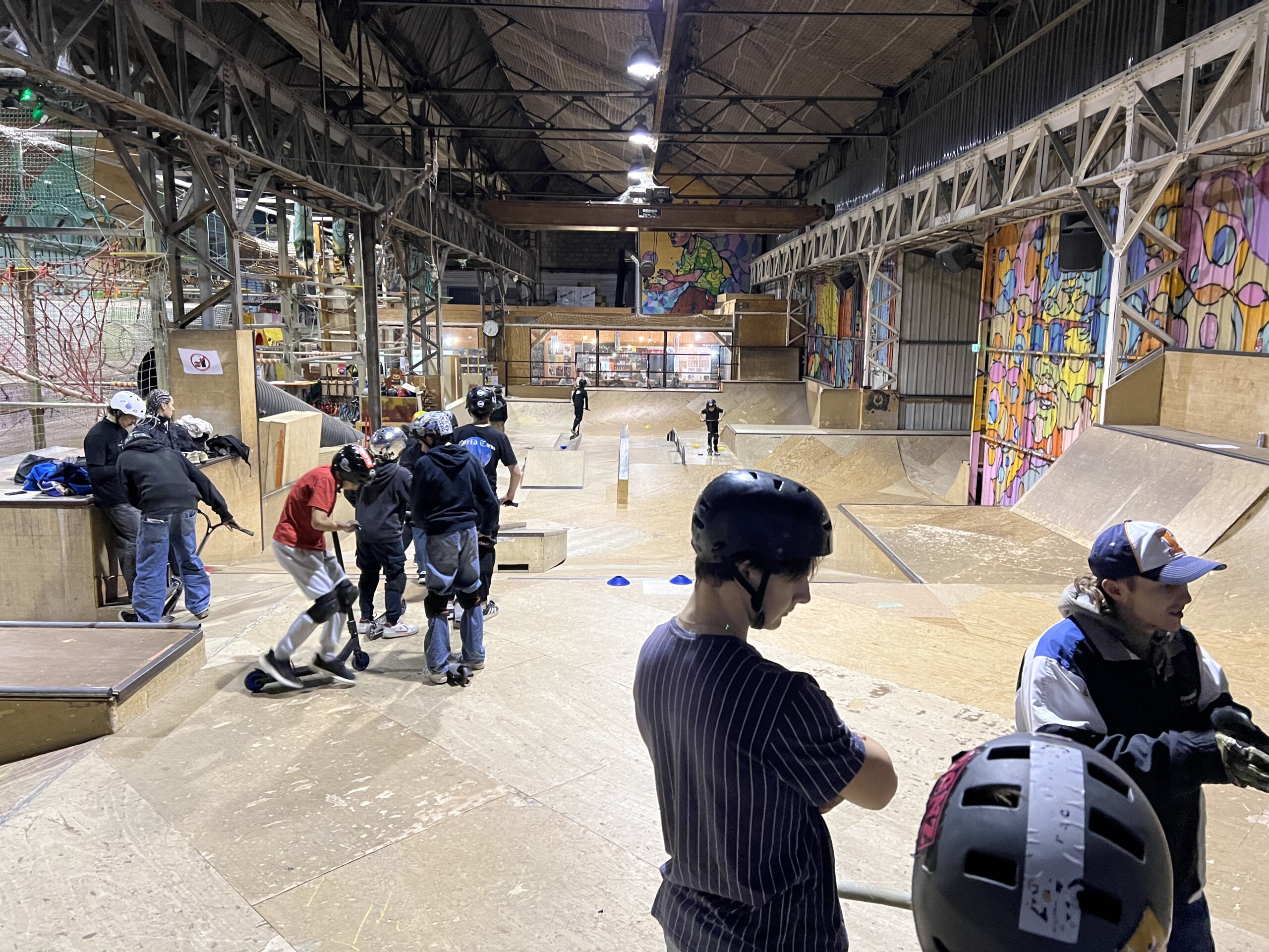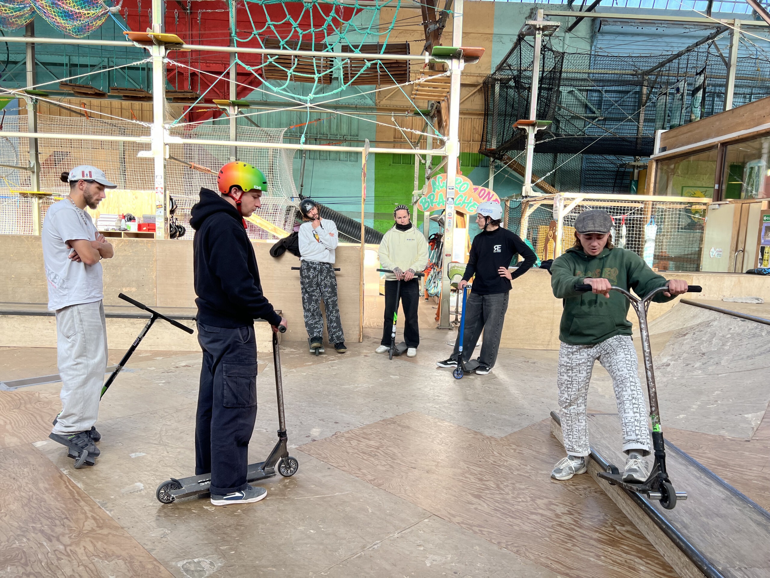 L’URBAN PARC, avec son skatepark couvert de 600 m² et ses espaces dédiés à la théorie, a offert des conditions optimales pour cette semaine de formation. Un lieu pensé pour allier pratique et réflexion, où les cinq stagiaires – Romain HOURDEL, Jérémy DUPIN, François LEMENAGER, Gérald DELVAILLE et Marceau LADHOUE – ont pu explorer les enjeux de l’entraînement sportif en trottinette, dans une logique co-constructive.