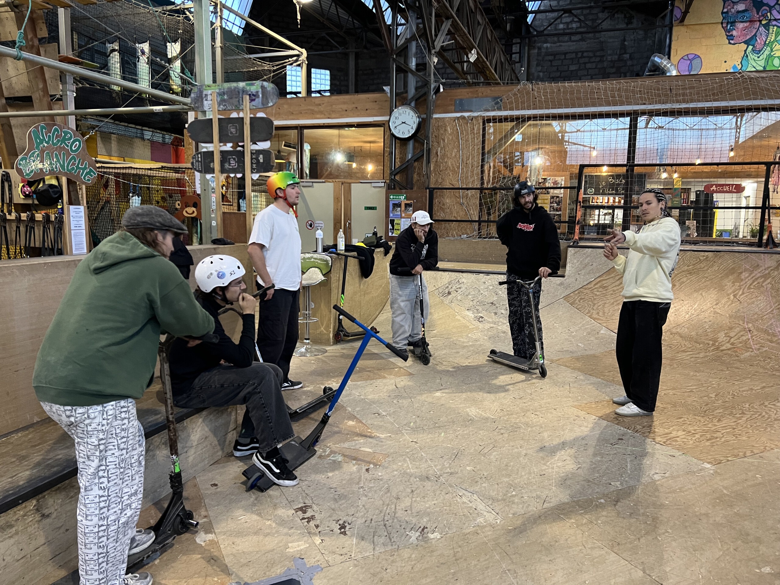 Au programme : échanges, réflexions collectives et mises en situation pratiques. Les stagiaires ont notamment assuré des cours de trottinette auprès d’enfants et d’adolescents du club Culture Glisse, une expérience concrète pour affiner leurs compétences pédagogiques et partager leur passion. Ces moments d’enseignement ont permis de confronter les théories à la réalité du terrain, tout en renforçant la dynamique de groupe.