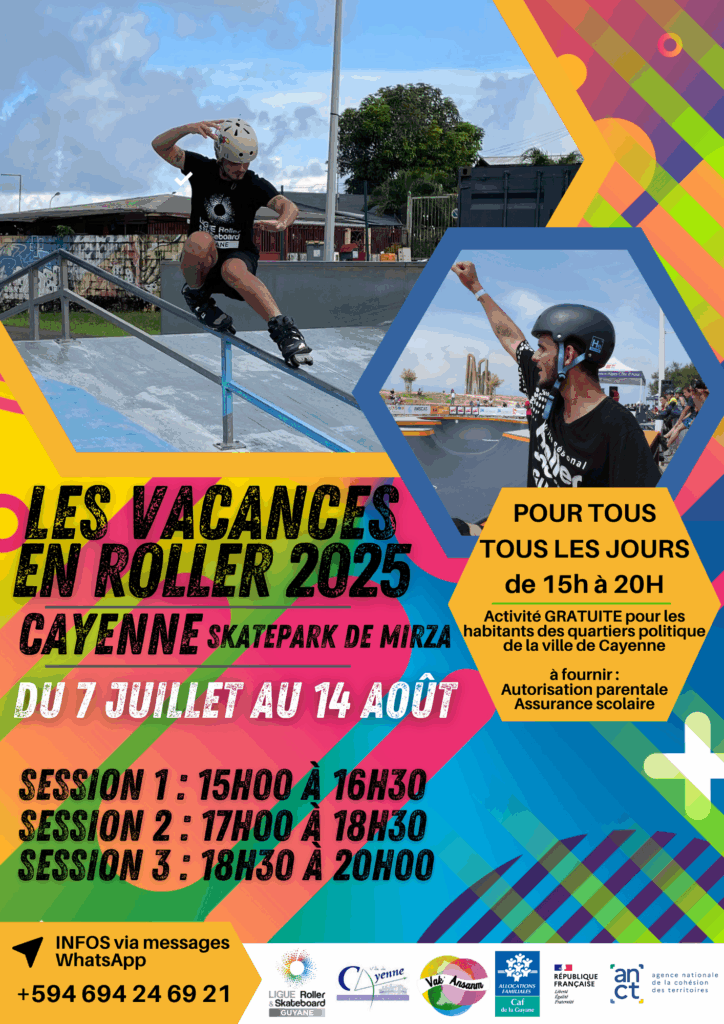 Activité gratuite pour les résidents des quartiers en politique de la Ville de Cayenne (sur présentation d’un justificatif de domicile). Une autorisation parentale devra être complétée sur place.