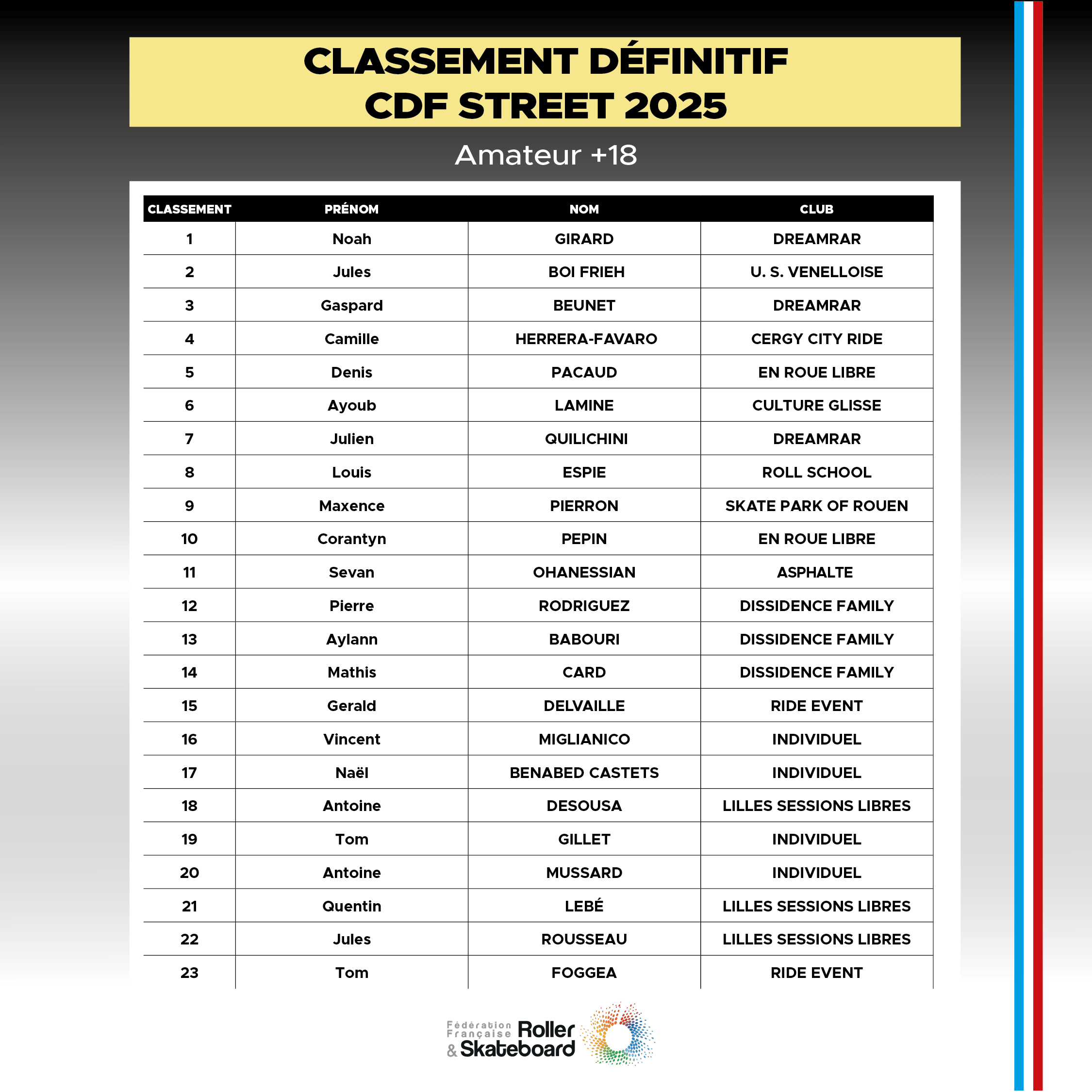Résultats des phases qualificatives du Championnat de France